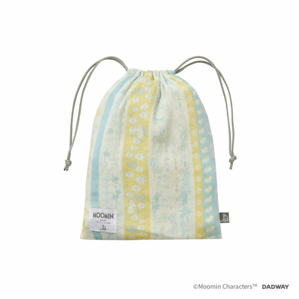 北欧らしいムーミン総柄の授乳ケープ。巾着付きで持ち運びやすい