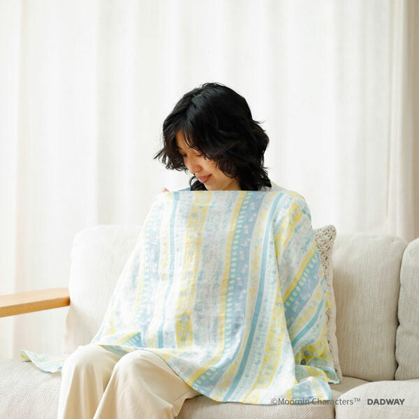 ムーミンベビー 授乳ケープ フラワーストライプ イエロー×ミント【送料無料 沖縄・一部地域を除く】