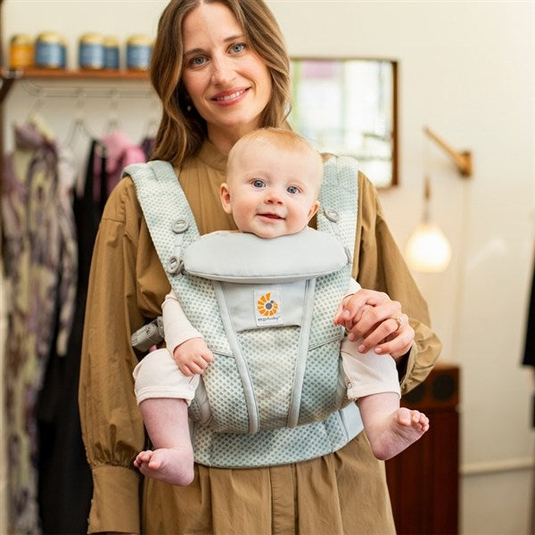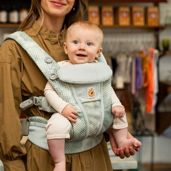 エルゴベビー最新モデル OMNI Breeze (オムニ ブリーズ)。 柔らかい肌ざわりと優れた通気性を持つSoftFlexメッシュを、ムレが気になるお子さまの背中からお尻部分にかけて使用。抱っこひもの中の湿気や熱を素早く外に逃がします。 人間工学に基づいた設計で、肩腰の負担をバランスよく分散。体にフィットしやすいスリムな設計で、素手の抱っこに近い密着した抱っこができます。 便利な仕切り付きのポーチや反射テープ、サイドポケット等、パパママに嬉しい機能も充実しています。