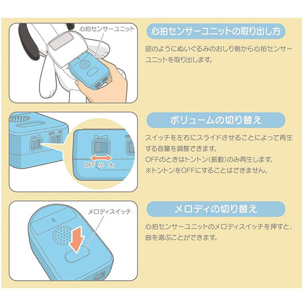 音声は、胎内音、自然音(2種)、メロディ(5曲)内蔵。