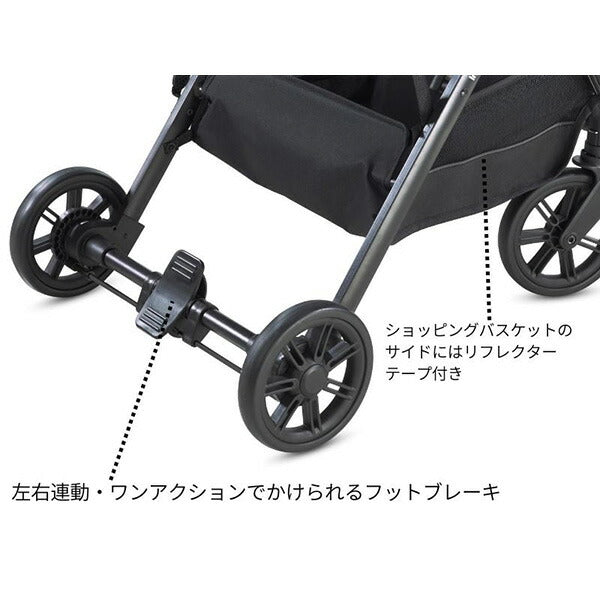 フットブレーキは左右連動で、ワンアクションで設定が可能。ロックも解除も軽く踏むだけなので、サンダルなどでも使いやすい設計です。