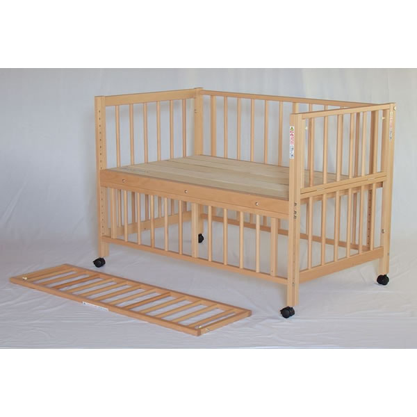 ベビーベッドを卒業したら、組み替えて3-4才*くらいまで使えるキッズベッドになります。低い寝台(床から22、キャスターをはずせば17)で1人寝の練習をしてみましょう。