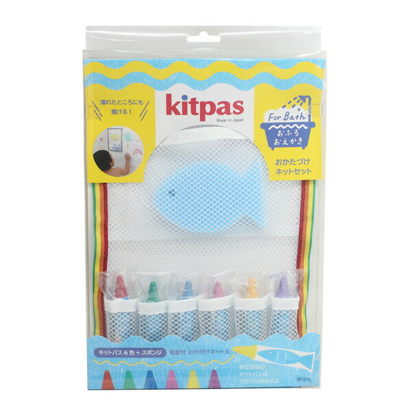 おふろ用キットパス6色&おかたづけネットセット ブルー 日本理化学工業 【絵の具 クレヨン アート お風呂 窓ガラス 鏡 描いて消せる】【送料無料 沖縄・一部地域を除く】