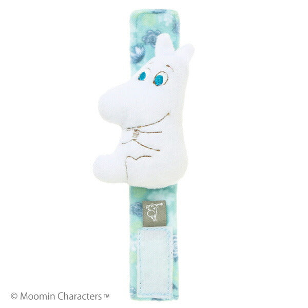 ムーミンベビーのリストラトル。やさしい手触り、赤ちゃんの手首にぴったり。