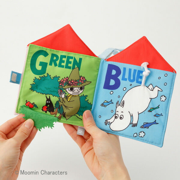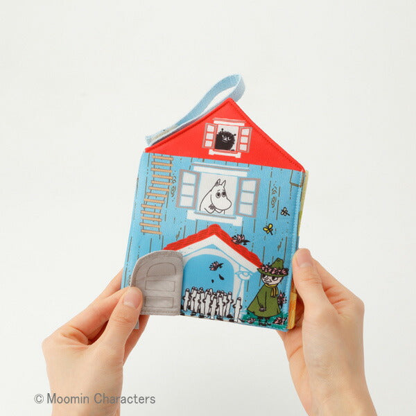 ムーミンの仲間たちがハウスからお外へ遊びに行く様子が描かれている布絵本。