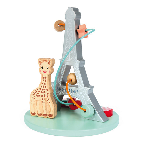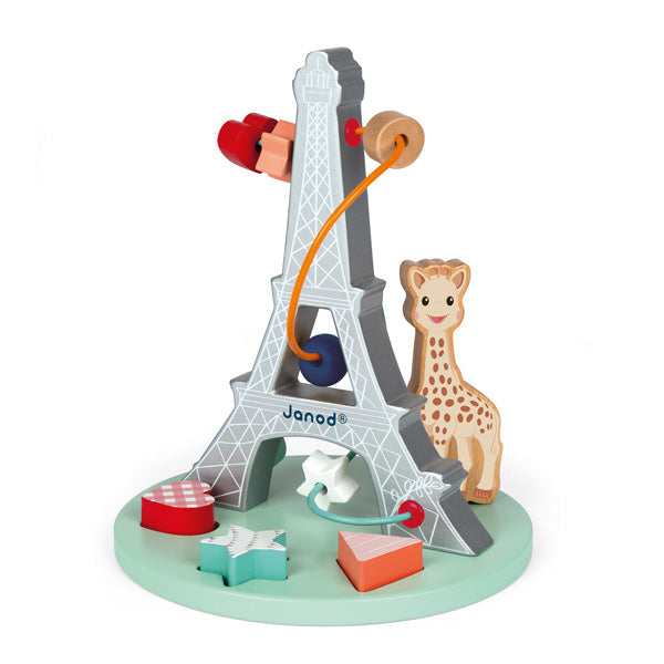 キリンのソフィーがモチーフになったコレクション。エッフェル塔がモチーフになった手遊びトイ。ビーズをクルクル転がして遊ぶことで指先を器用に動かす練習にも。