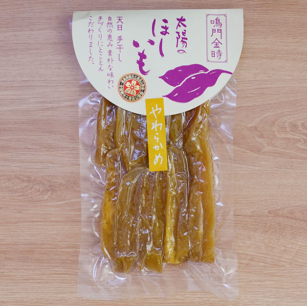 徳島県産鳴門金時を使い、天日で一枚一枚丁寧に手干し。自然の恵み、素朴な味わい、手づくりにとことんこだわったほしいもです。そのままでも美味しくお召し上がり頂けるやわらかめスティックタイプです。オーブンで軽く焼くと更に美味しくなります。とろけるチーズを上に乗せて焼くとおつまみやおやつにおすすめです。食品添加物を使っていないので大人から子供まで安心して食べられます。