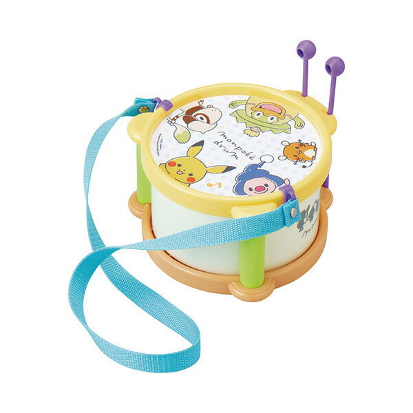 キャラクターたちがひょっこり顔を出した打面が可愛らしく、側面にはシルエットアートを施した、モンポケカラーのおしゃれなドラムです。