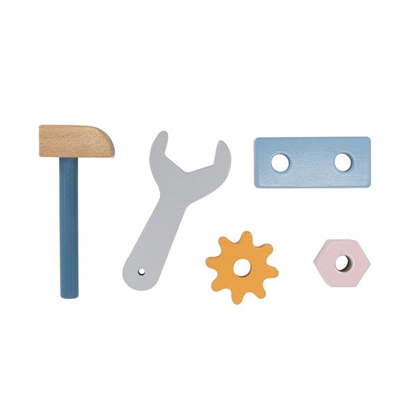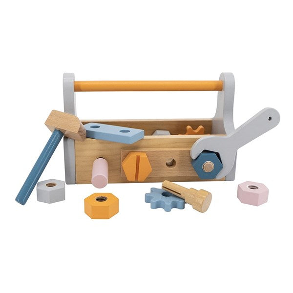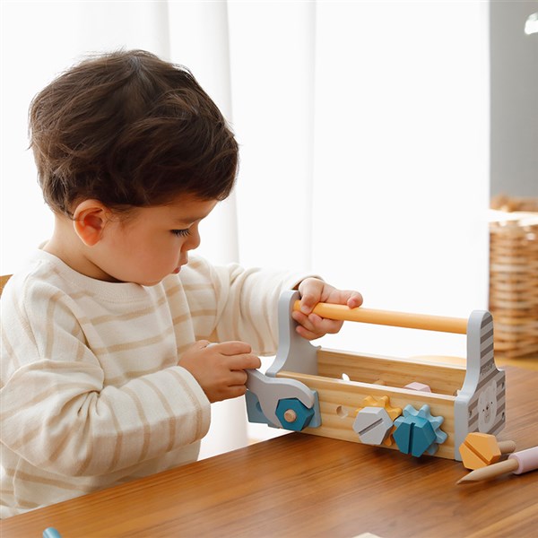 ハンマー、レンチ、スクリュードライバー、ボルトとナット、ペグ、ギア、パネルなどの多くの工具が入っているので、幅広く遊べます。このおもちゃで遊ぶことで、子供たちはさまざまな道具について学び、ネジを回してみたり、叩いてみたり、引き抜いたりなど、指先のトレーニングや、自分の好きな形を組み立てることで創造力も育みます。小さな職人さんのお気に入りになること間違いなし!